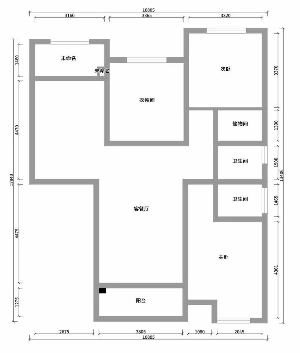 并没有常规的玄关空间,希望能够结合餐厅,完善整体收纳布局。